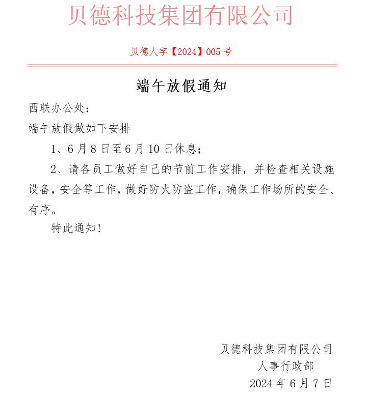 2024年端午節(jié)貝德科技集團放假通知
