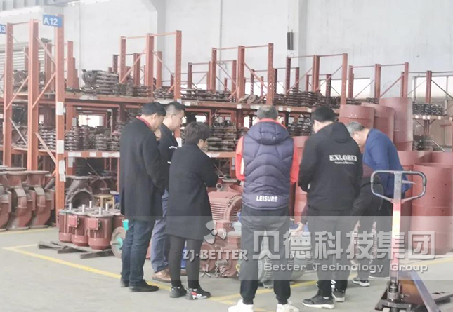 會議過后,在廠領(lǐng)導(dǎo)及電機(jī)總工程師邢工的陪同下,一行人又參觀了測試場地與電機(jī)組裝車間。