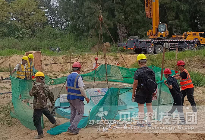 廣東吳川市市政污水項目的污水處理設備項目組經(jīng)研究決定采用一體化預制泵站,項目負責人通過網(wǎng)絡找到我們貝德科技集團有限公司,了解了我公司的具體信息與工程案例,并與我司技術(shù)人員進行電話溝通。經(jīng)過幾家泵站公司的對比,最后決定采用我司的一體化預制泵站,定制了一套規(guī)格為3800x6400mm的一體化預制泵站。